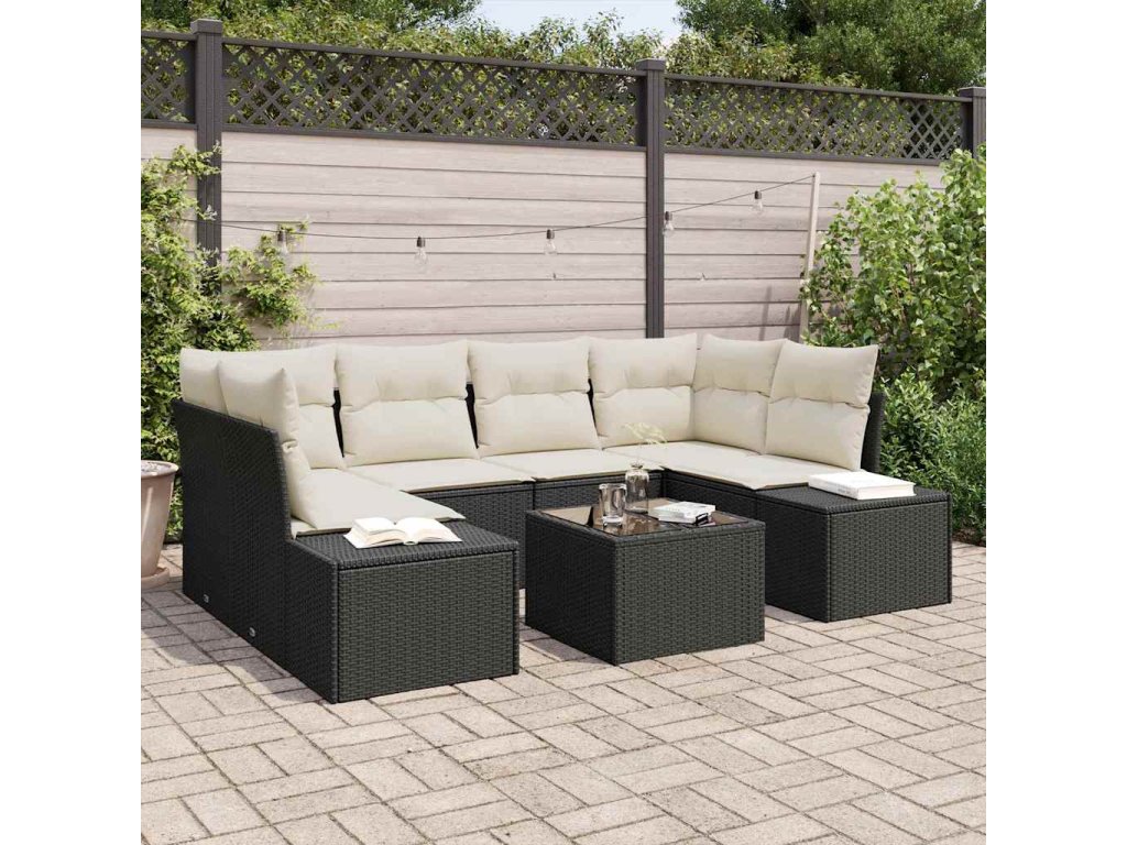 Sada zahradních pohovek 8 pcs Černá a krémová polyratan 3355626