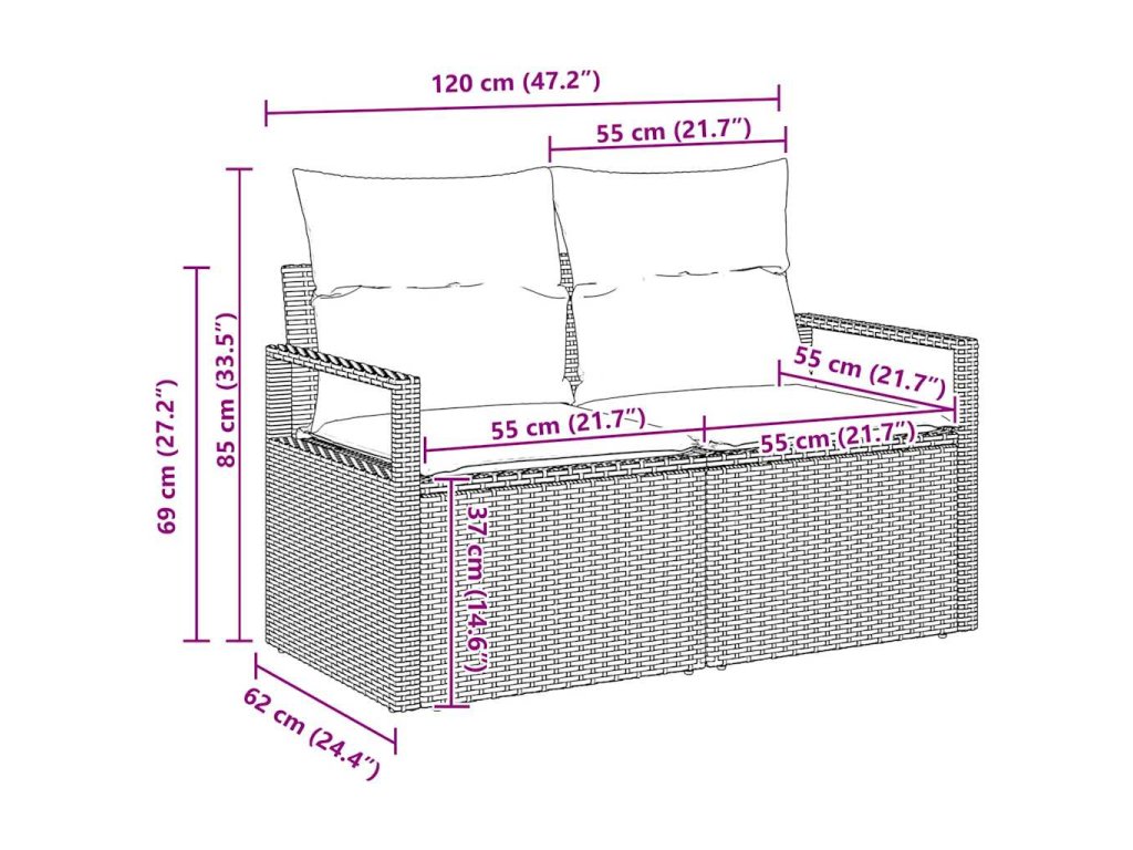 - 4 x pohovka s opěradlem: 60 x 62 x 69 cm (D x Š x V)