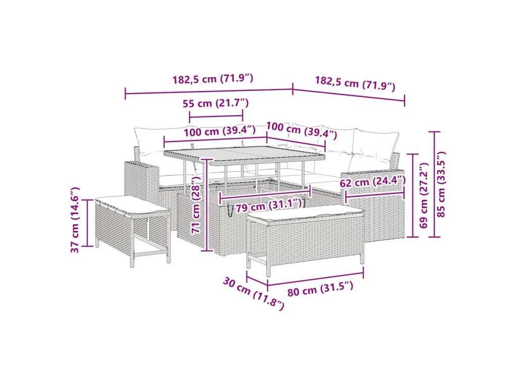 - Vysoce kvalitní materiály Sedací souprava je z prvotřídního poly ratanu a odolného masivního akáciového dřeva. Navrženo tak, aby vydrželo, materiály zajišťují, že set odolává slunci a dešti, přičemž si udrží eleganci a strukturu po sezónách.