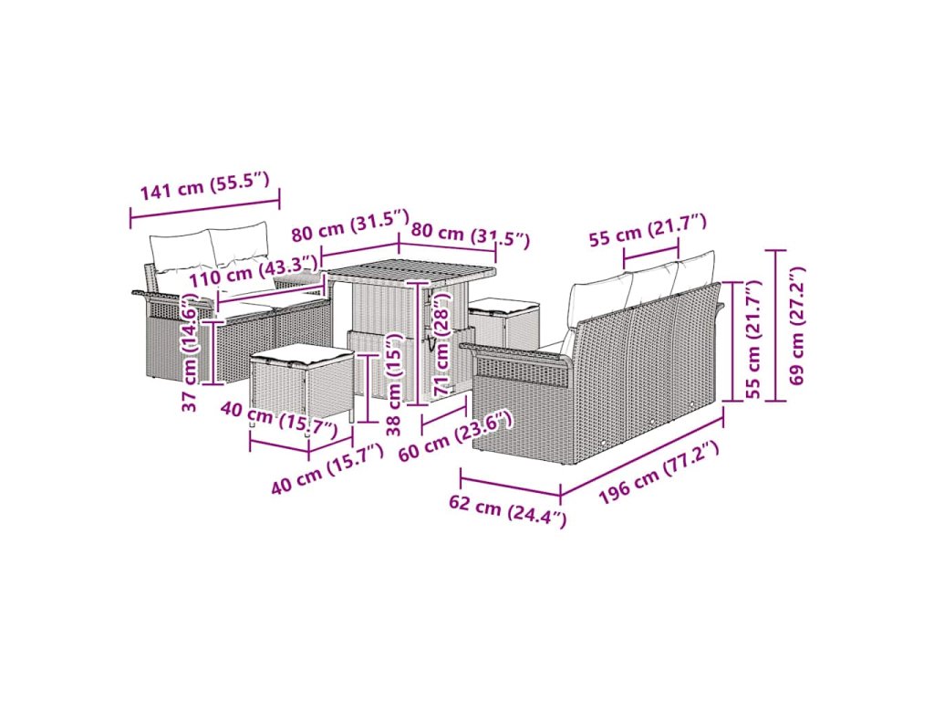 - Ideální použití Perfektně se hodí do zahrad, na terasy a další venkovní prostory. Tato sada vyzývá k různorodému využití – ať už si chcete odpočinout, povečeřet nebo hostit přátele, modulární design nabízí nekonečné možnosti uspořádání.