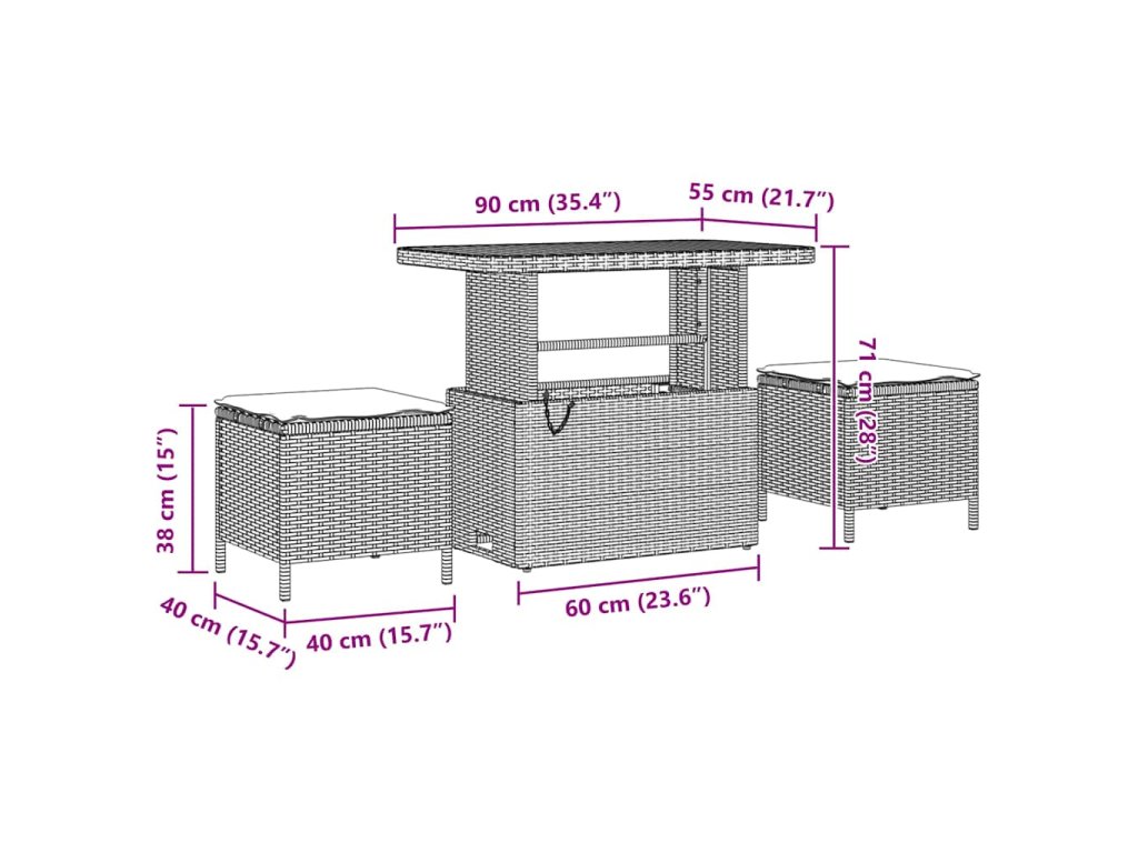 - Obsahuje: Tento set obsahuje opěradlo a opěrky z poly ratanů s rámem z práškově lakované oceli pro lepší podporu. Tlusté sedací polštáře s odnímatelnými obaly zajišťují pohodlí. Lehký akáciový stůl nabízí jak pohledovou příjemnost, tak i funkčnost pro různé venkovní aktivity.