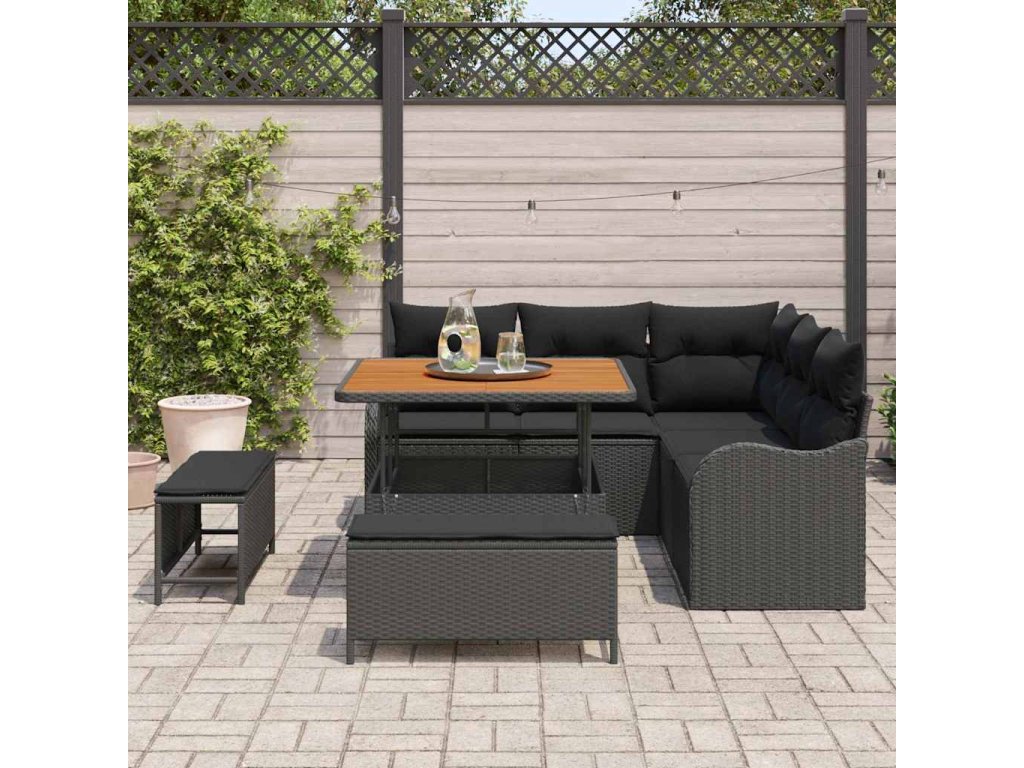 - Flexibilní funkce: Výškově nastavitelný stůl umožňuje snadné přechody od kávových chvílí po slavnostní večeře. Modulární design dává možnost přizpůsobení podle preferencí uživatele. Lehké provedení usnadňuje přesun pohovky po zahradě a UV odolnost chrání před vyblednutím na slunci.