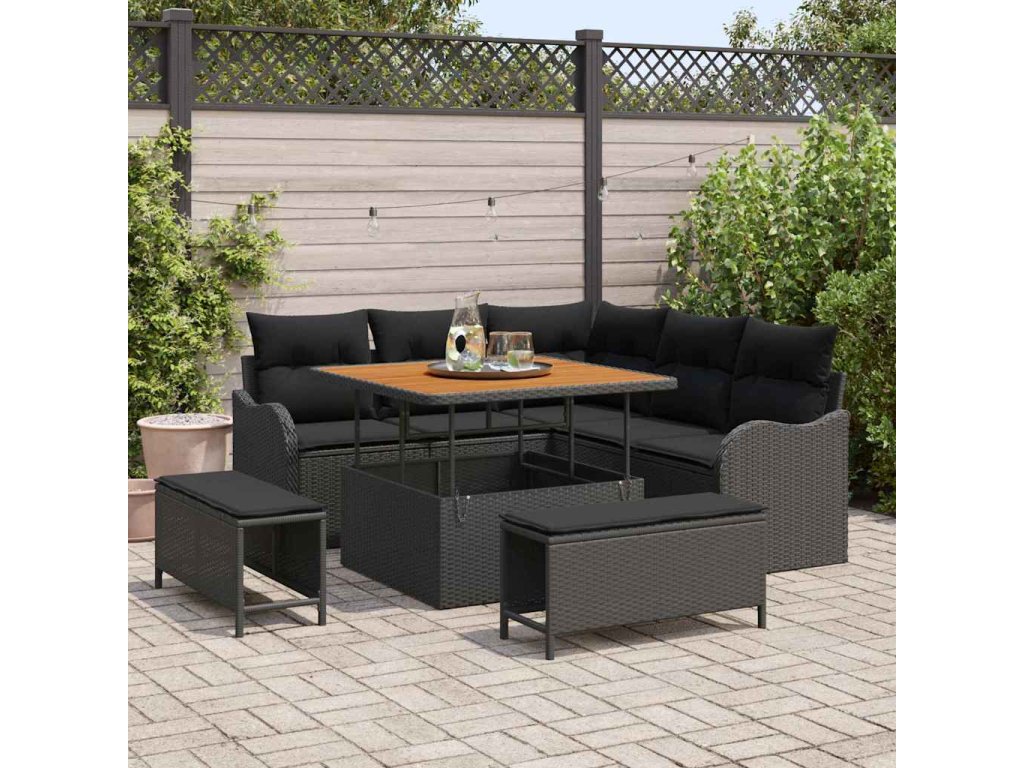 Sada zahradních pohovek 8 pcs Černá polyratan 3362254