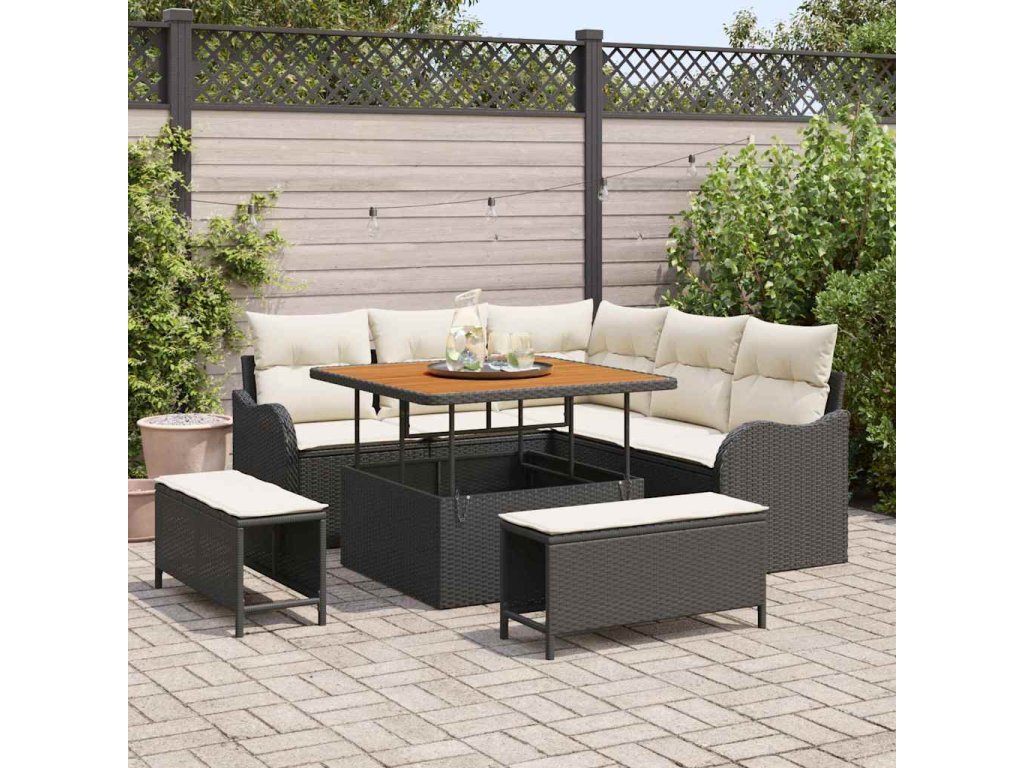 - Flexibilní funkce: Výškově nastavitelný stůl umožňuje snadné přechody od kávových chvílí po slavnostní večeře. Modulární design dává možnost přizpůsobení podle preferencí uživatele. Lehké provedení usnadňuje přesun pohovky po zahradě a UV odolnost chrání před vyblednutím na slunci.