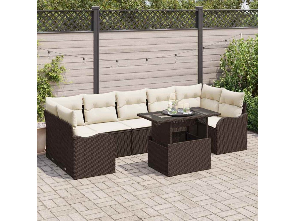 Sada zahradních pohovek 8 pcs Hnědá a krémová polyratan 3348414