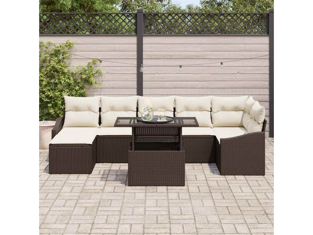 Sada zahradních pohovek 8 pcs Hnědá a krémová polyratan 3349044