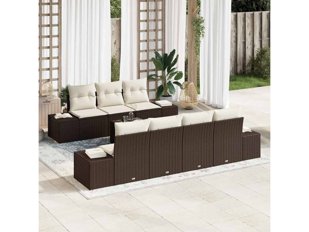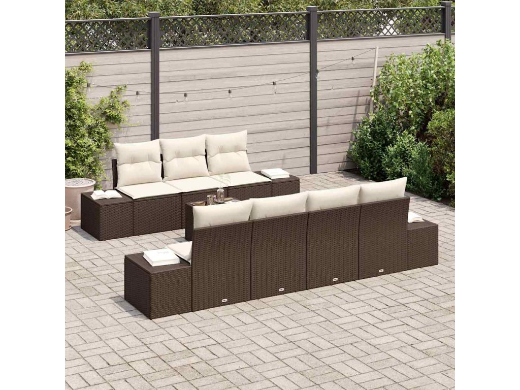 Sada zahradních pohovek 8 pcs Hnědá a krémová polyratan 3355637