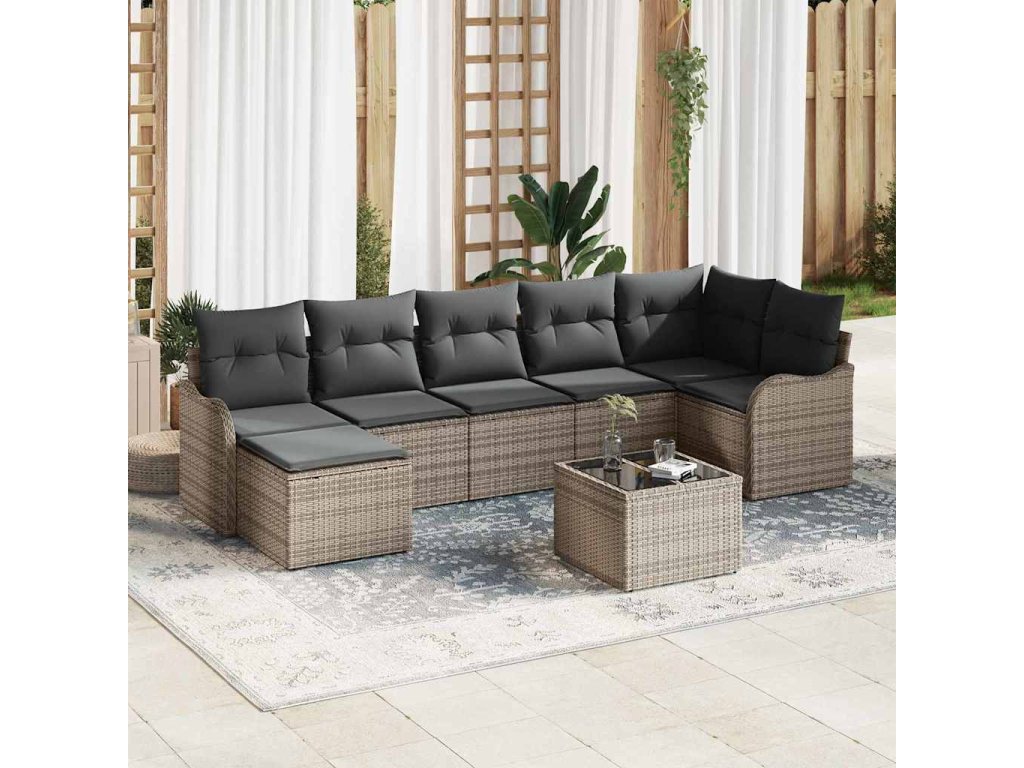 Sada zahradních pohovek 8 pcs Šedá polyratan 3345799