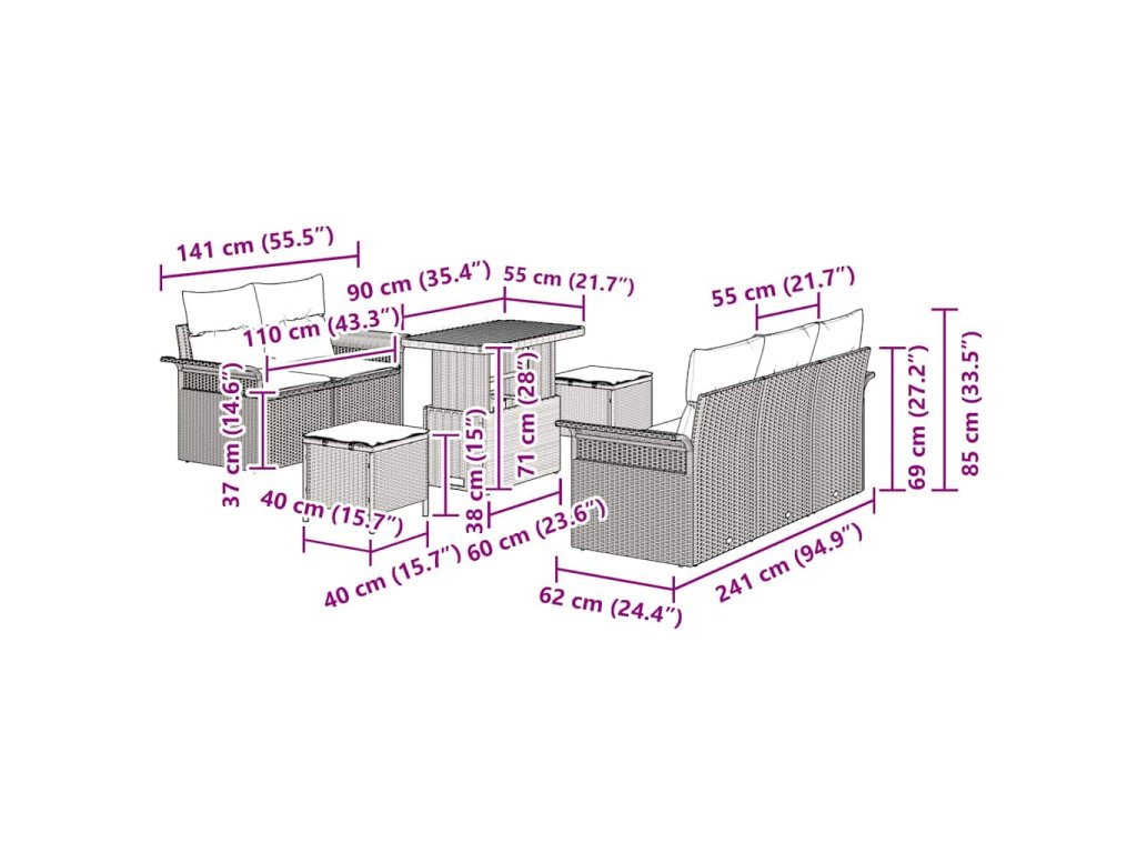 - Ideální použití Perfektně se hodí do zahrad, na terasy a další venkovní prostory. Tato sada vyzývá k různorodému využití – ať už si chcete odpočinout, povečeřet nebo hostit přátele, modulární design nabízí nekonečné možnosti uspořádání.