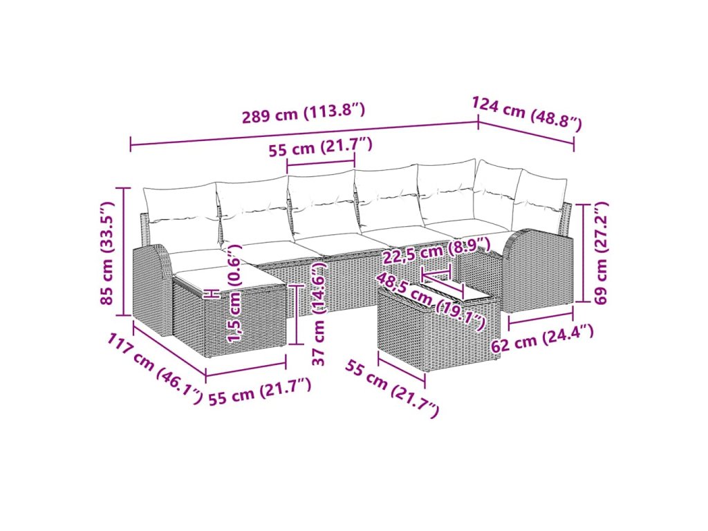 Sada zahradních pohovek 8 pcs Světle šedá Poly ratan 3346142