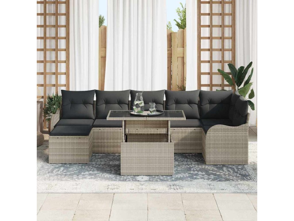 Sada zahradních pohovek 8 pcs Světle šedá Poly ratan 3348508