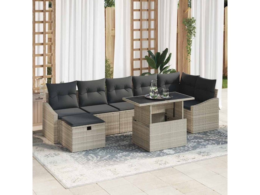 Sada zahradních pohovek 8 pcs Světle šedá Poly ratan 3359849