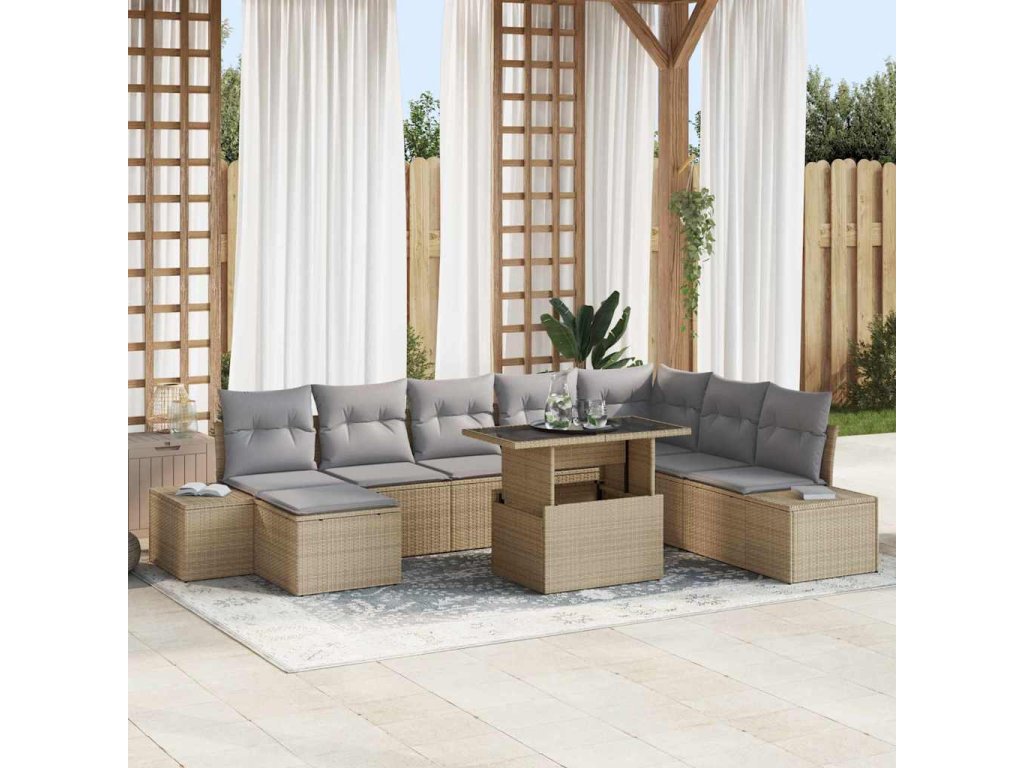 Sada zahradních pohovek 9 pcs Béžová a Světle šedá polyratan 3349236