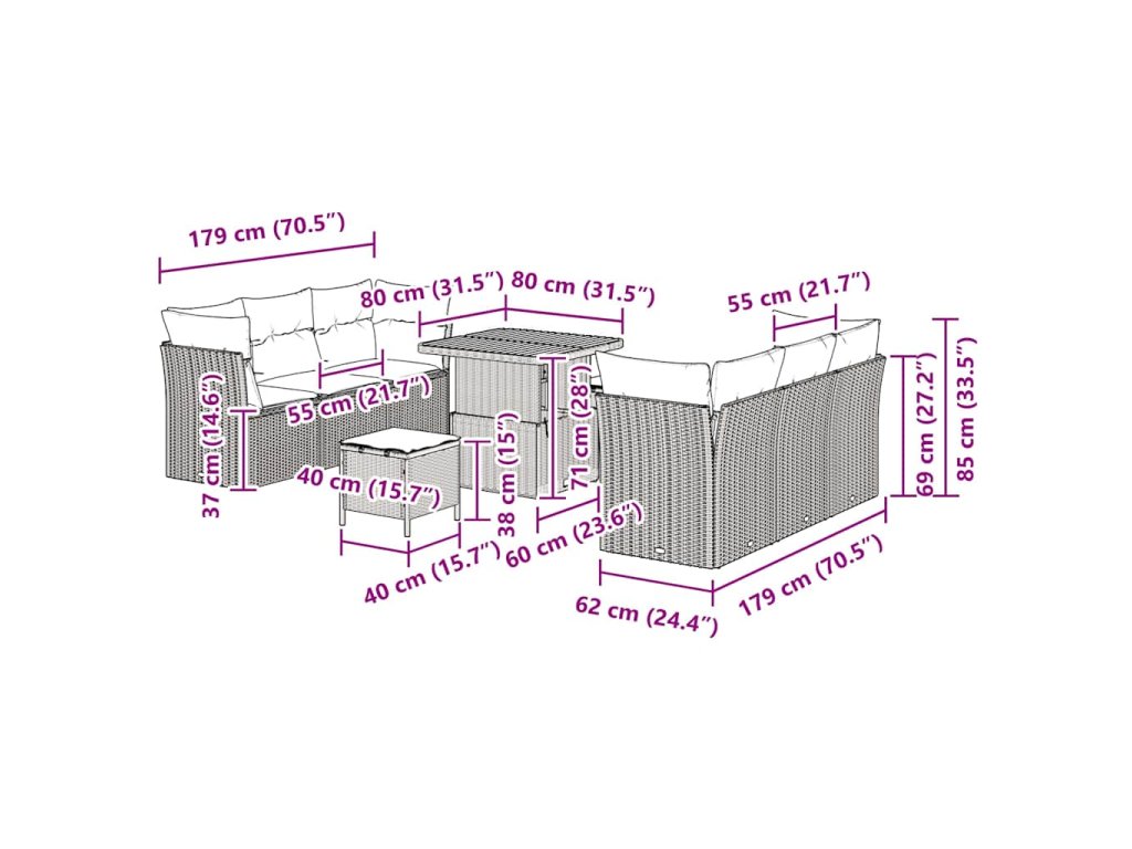 Sada zahradních pohovek 9 pcs Béžová polyratan 3361437