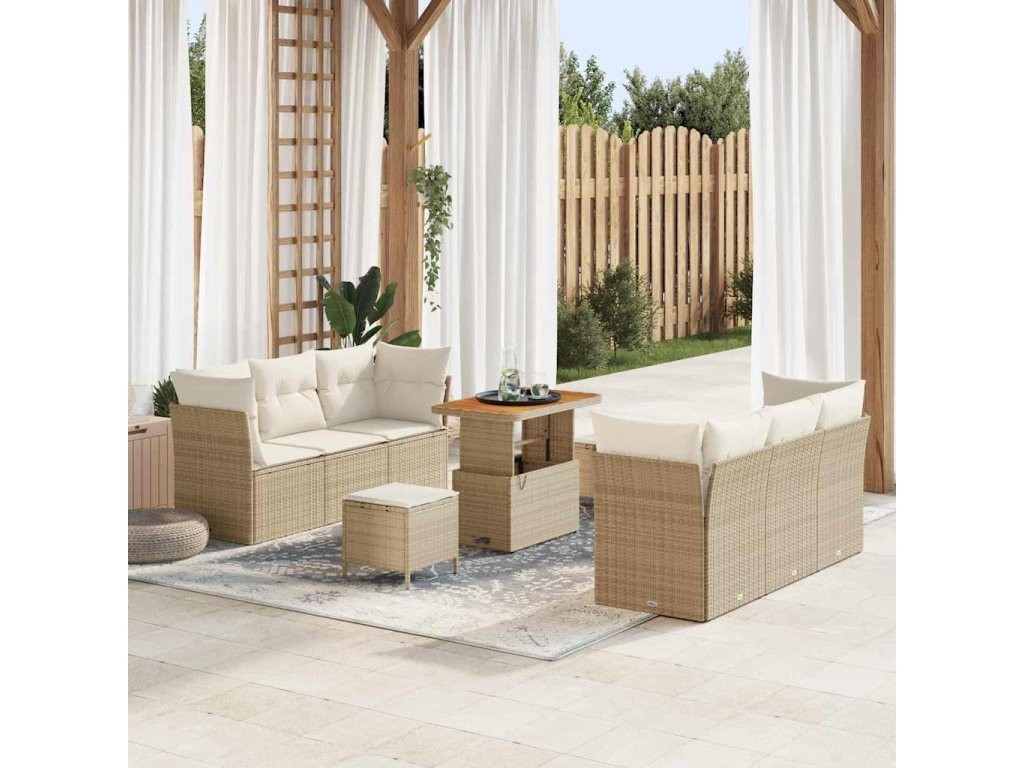 Sada zahradních pohovek 9 pcs Béžová polyratan 3361441