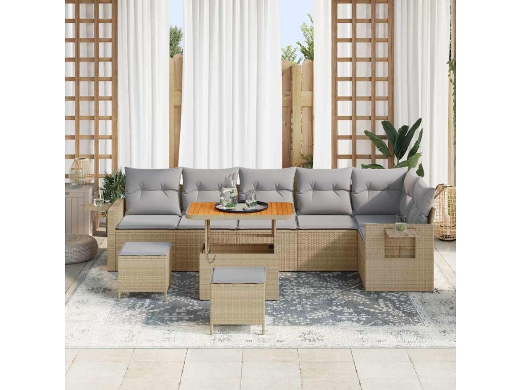 Sada zahradních pohovek 9 pcs Béžová polyratan 3361767