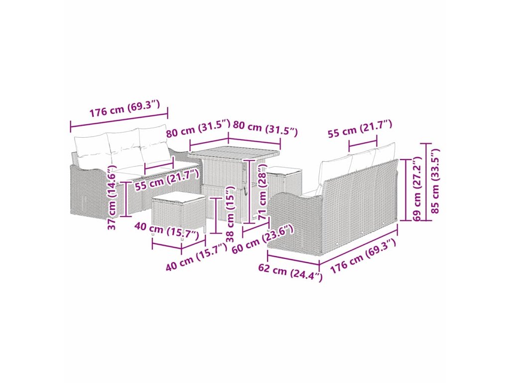 - Funkční prvky Souprava je modulární, což vám umožní přizpůsobit ji různým příležitostem. Poly ratanové opěradlo a područky poskytnou oporu pro maximální pohodlí, zatímco akáciový stůl je ideální pro jídlo nebo kávu. Každý kousek je navržen tak, aby zhoršoval váš uživatelský zážitek skrze premyslený design a praktičnost.