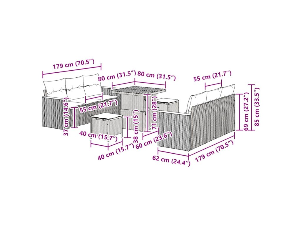 Sada zahradních pohovek 9 pcs Béžová polyratan 3362997