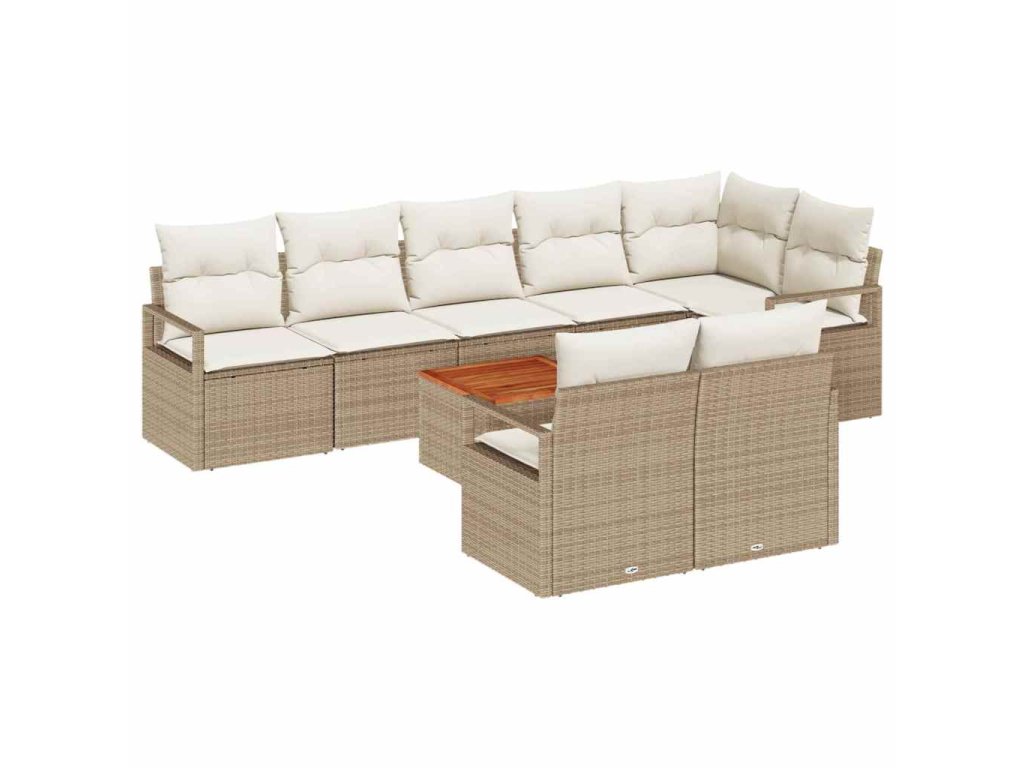 - Vysoce kvalitní materiály: Pohovková sada je z vysoce kvalitního poly ratanu, což dodává na odolnosti a vizuální přitažlivosti. Tento materiál ječný, aby vydržel všechny povětrnostní vlivy, takže vám poslouží dlouho. Dřevěné části jsou z masivního akáciového dřeva, které je super pevné a dodává přírodní nádech.