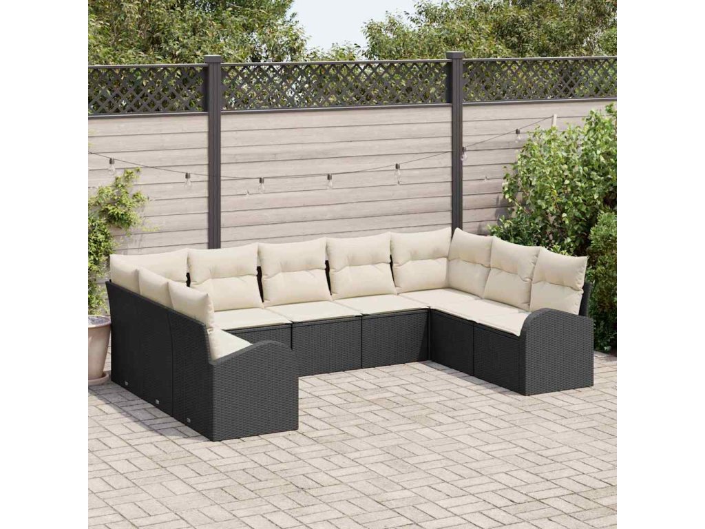 Sada zahradních pohovek 9 pcs Černá a bílá Poly ratan 3354866