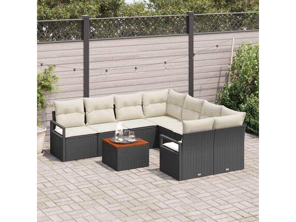 Sada zahradních pohovek 9 pcs Černá a krémová polyratan 3356353