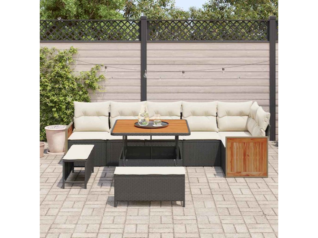 Sada zahradních pohovek 9 pcs Černá a krémová polyratan 3365265