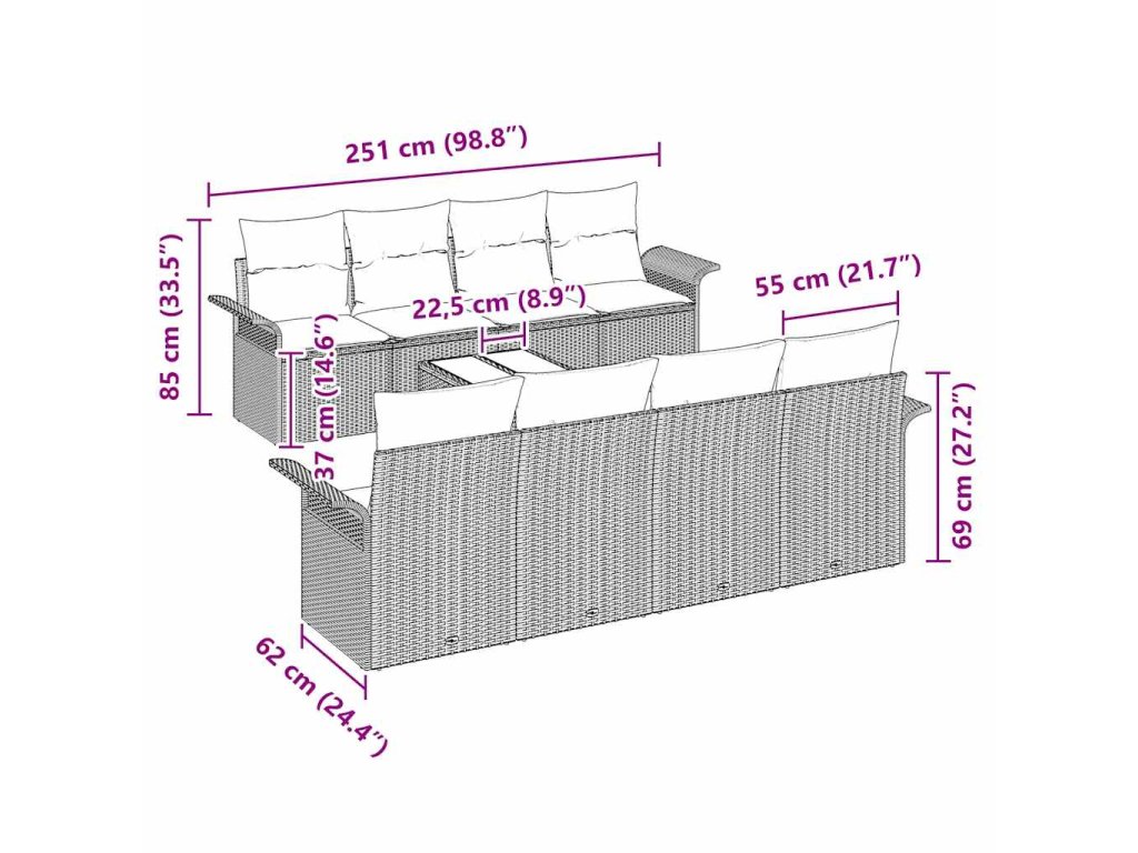 Tato moderní sada zahradního gauče představuje styl a funkčnost, a skvěle zapadne do každého venkovního prostoru. Její jednoduché, ale rafinované linie a unikátní texturu poly ratanu vytvářejí příjemnou atmosféru, která se hodí k moderním zahradám, terasám a dvorkům. Ideální na rodinné setkání nebo klidné chvíle venku, tato praktická sada gaučů nabízí pohodlí a flexibilitu a lehce se přizpůsobí jak společenským, tak osamělým chvílím.