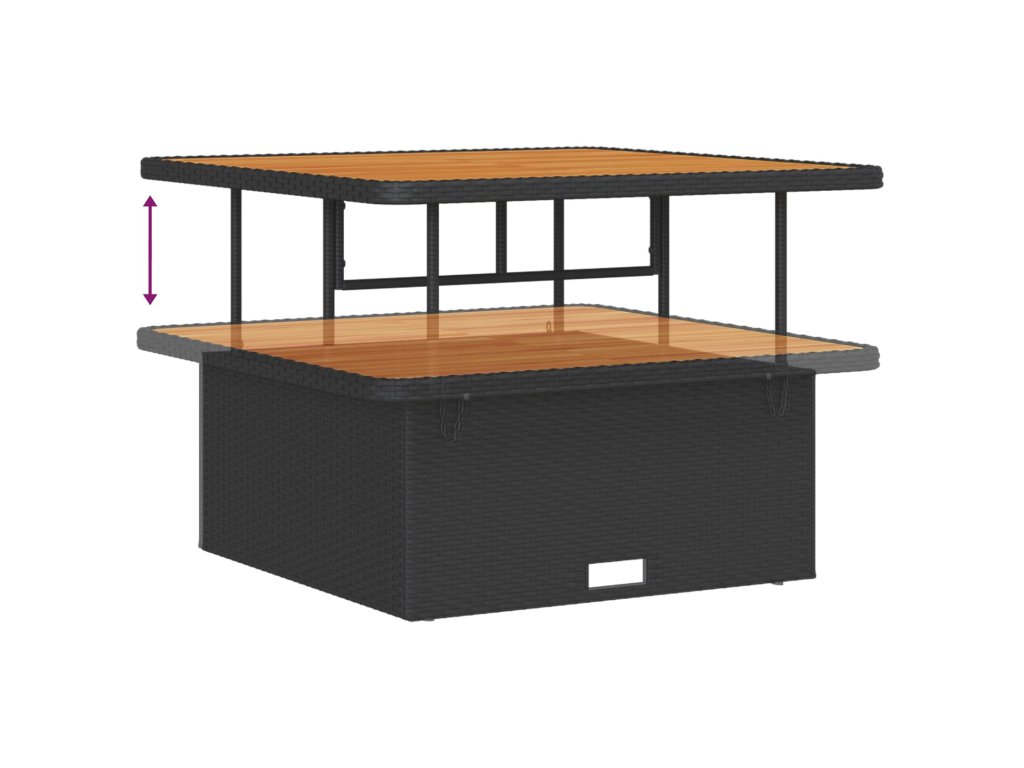 - Materiály: Tato zahradní sedací souprava je převážně z poly ratanu, což jí dodává šik vzhled, který se hodí k jakékoli venkovní výzdobě. Pevné akáciové dřevo přidává přírodní eleganci. Oba materiály jsou odolné vůči povětrnostním vlivům, takže máte spolehlivé a atraktivní sezení.