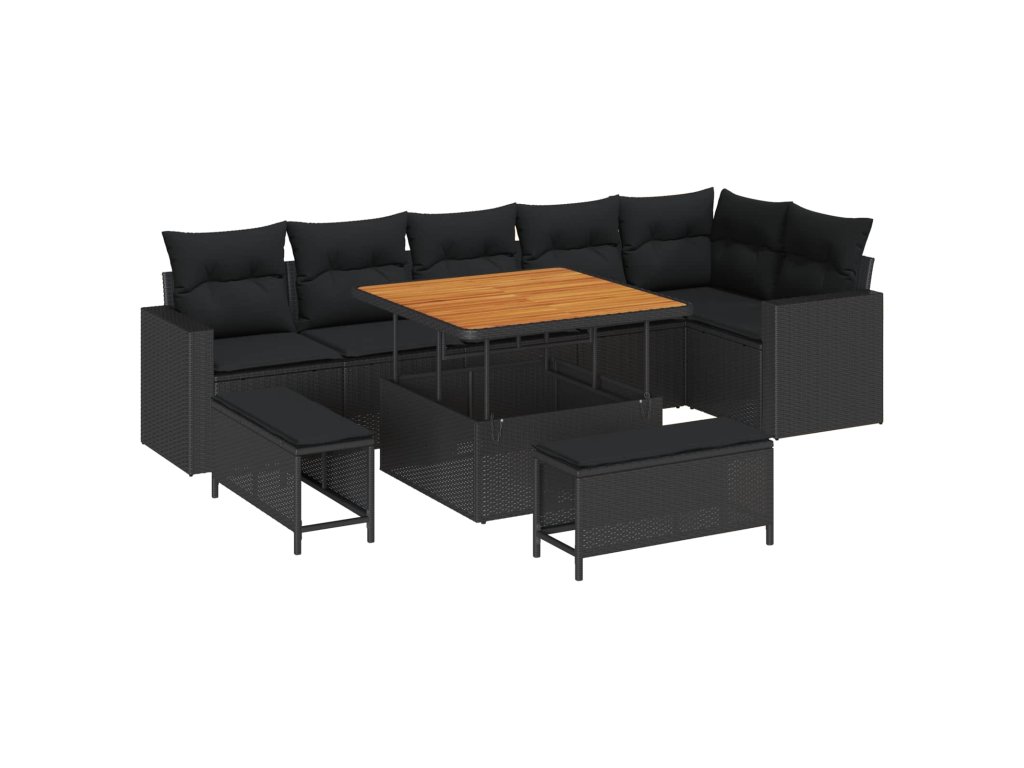 Sada zahradních pohovek 9 pcs Černá polyratan 3361624