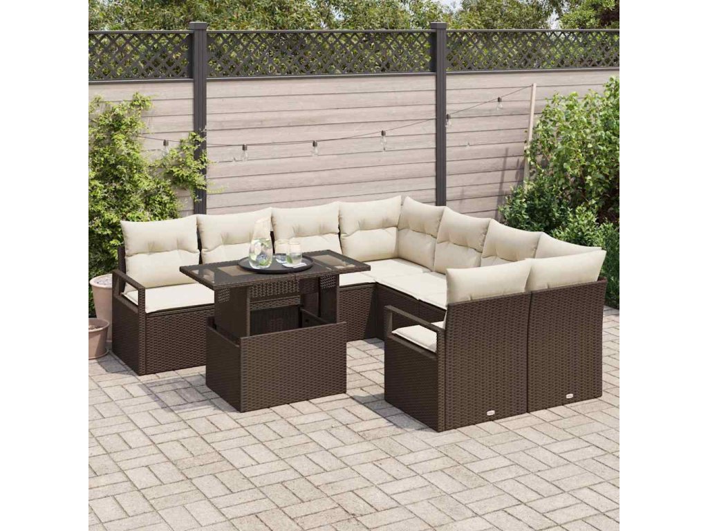 Sada zahradních pohovek 9 pcs Hnědá a krémová polyratan 3348794