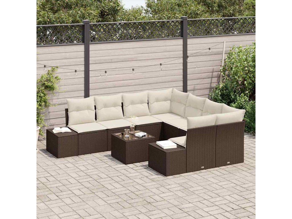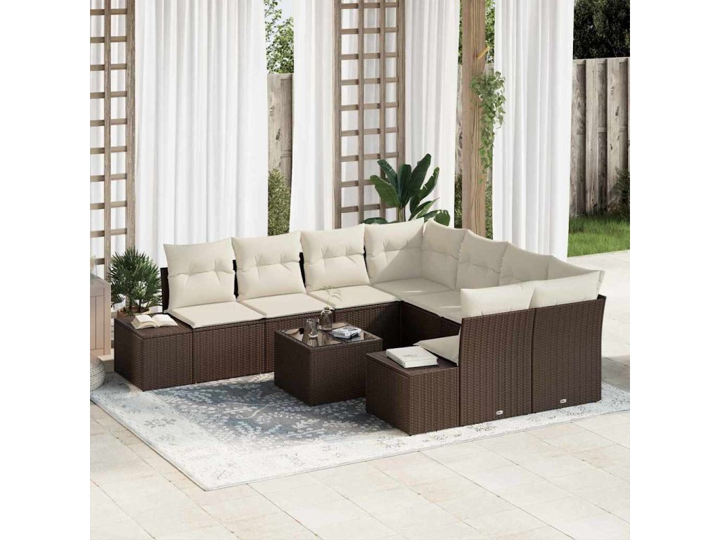 Sada zahradních pohovek 9 pcs Hnědá a krémová polyratan 3355667