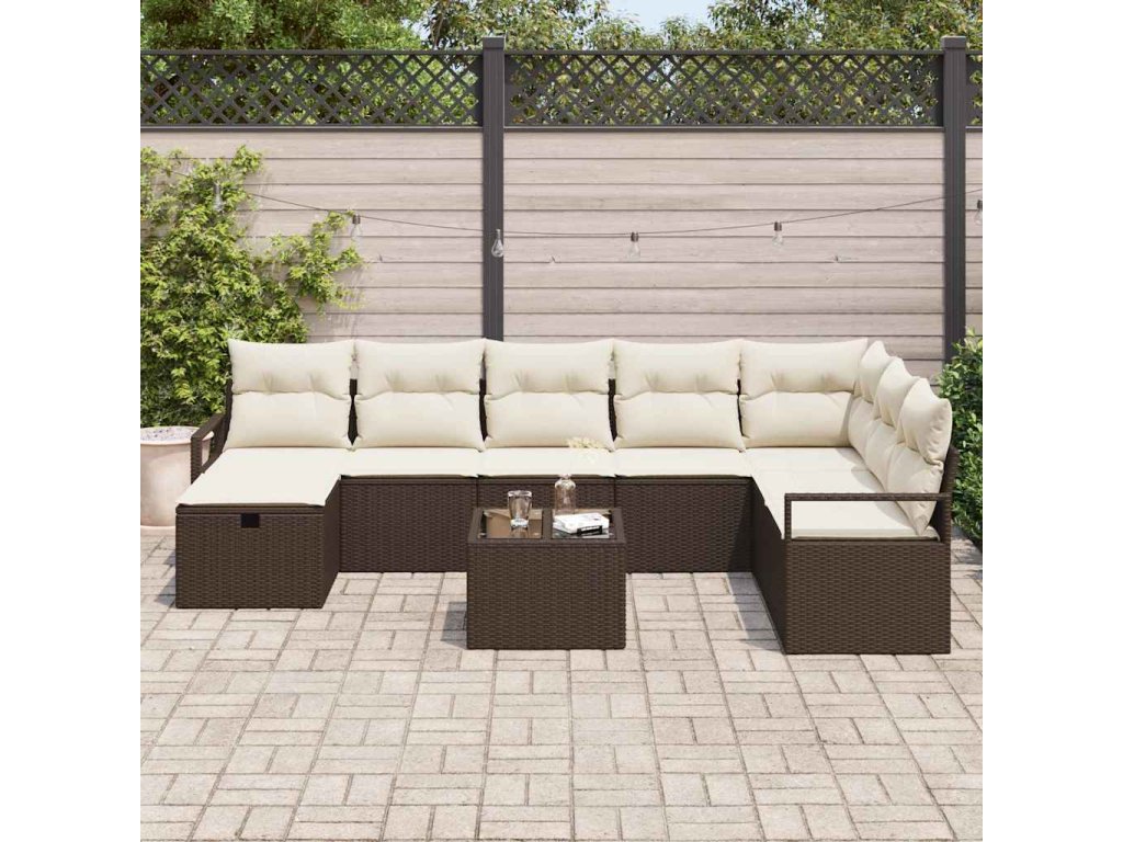 Sada zahradních pohovek 9 pcs Hnědá Poly ratan 3360569