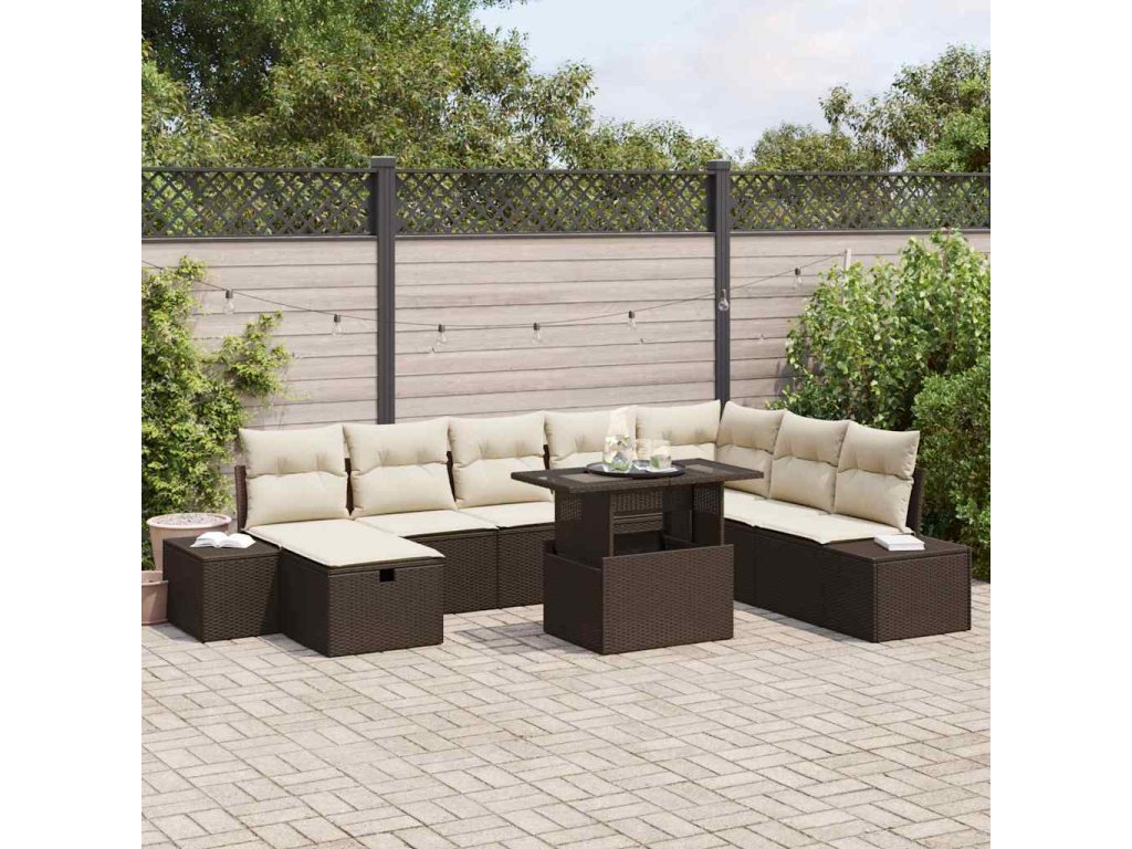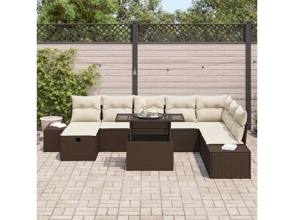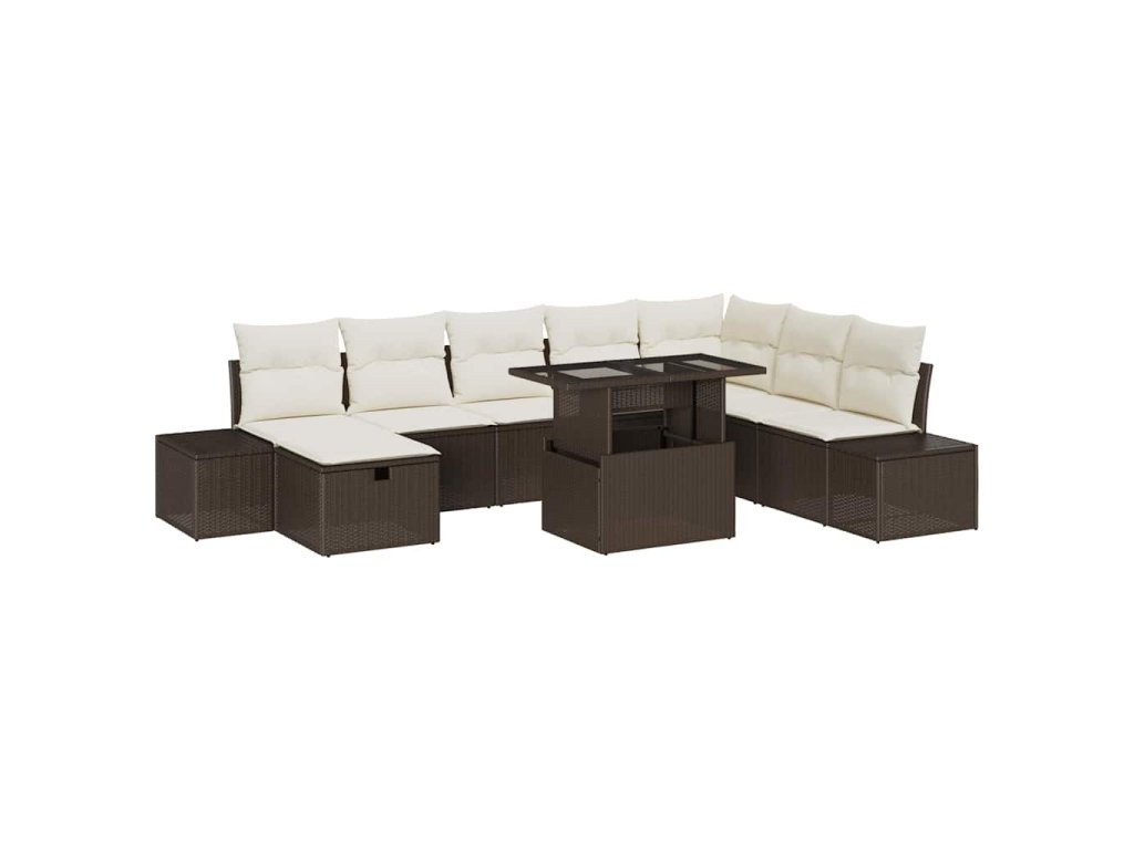 Sada zahradních pohovek 9 pcs Hnědá polyratan 3361227