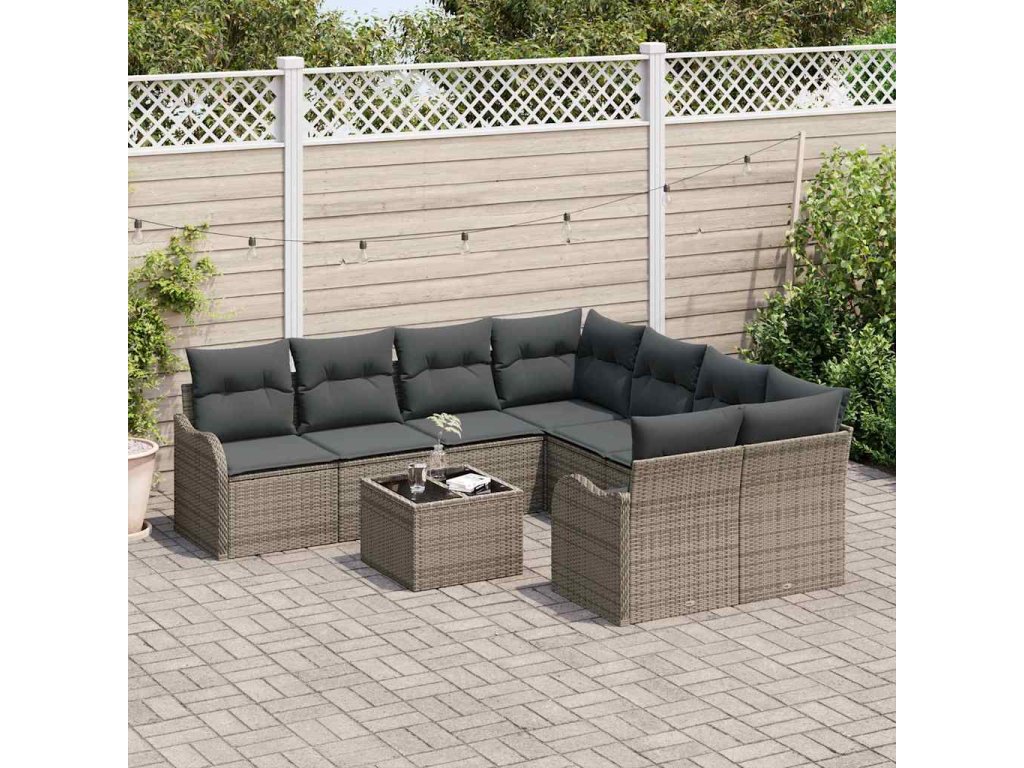 Sada zahradních pohovek 9 pcs Šedá Poly ratan a ocel a sklo 3354308