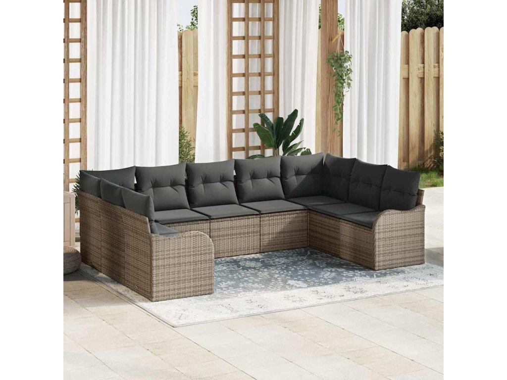 Sada zahradních pohovek 9 pcs Šedá polyratan 3345859