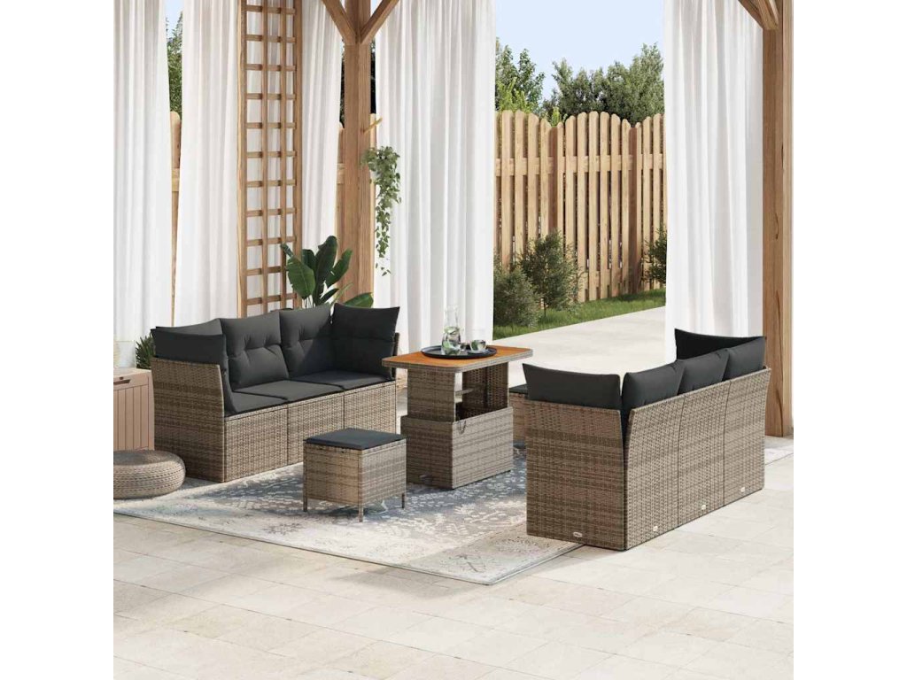 Sada zahradních pohovek 9 pcs Šedá polyratan 3361443
