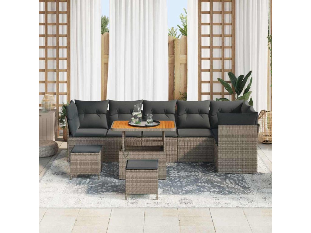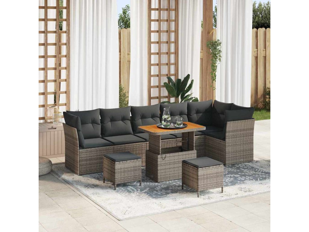 Sada zahradních pohovek 9 pcs Šedá polyratan 3361508