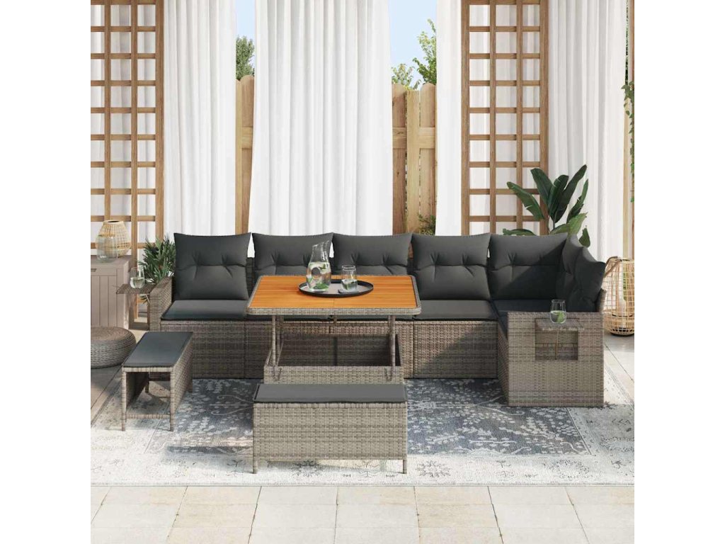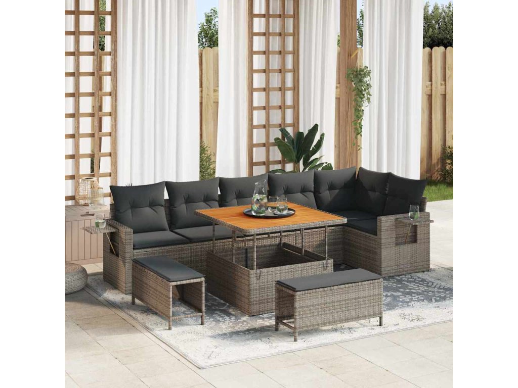 Sada zahradních pohovek 9 pcs Šedá polyratan 3361758
