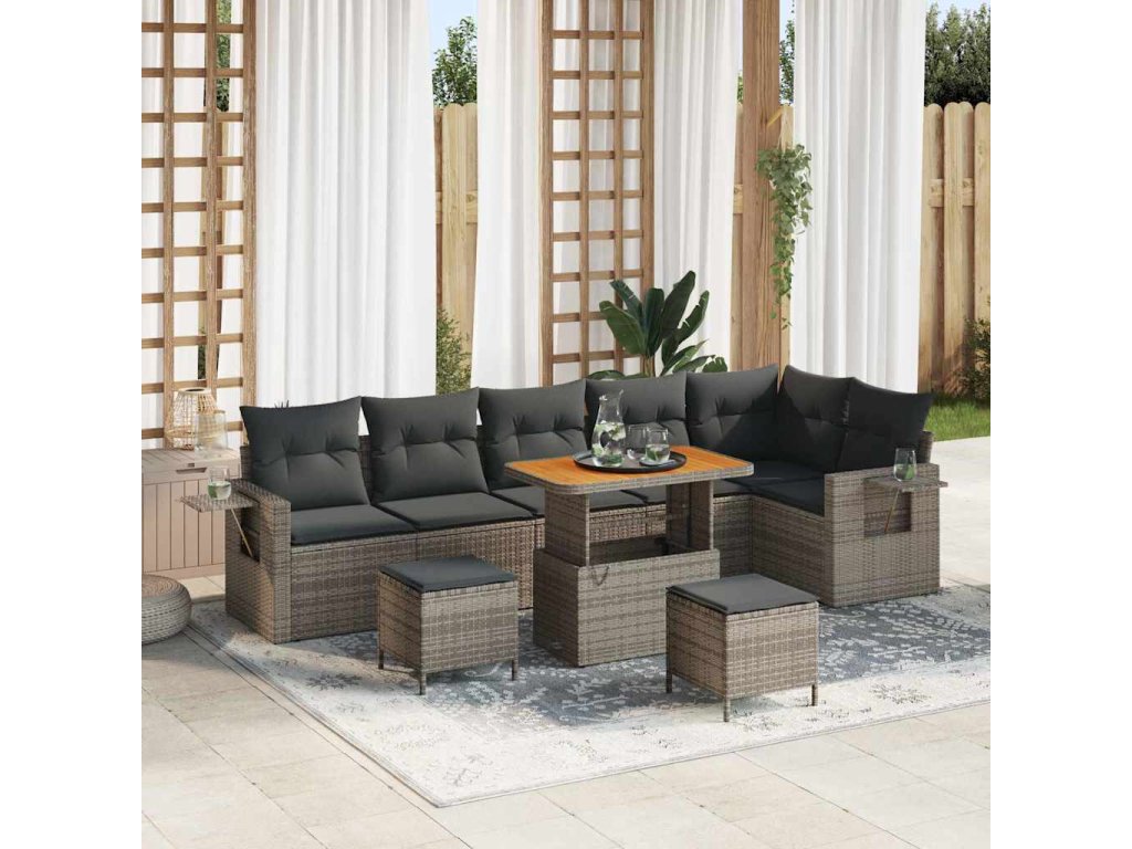 Sada zahradních pohovek 9 pcs Šedá polyratan 3361768