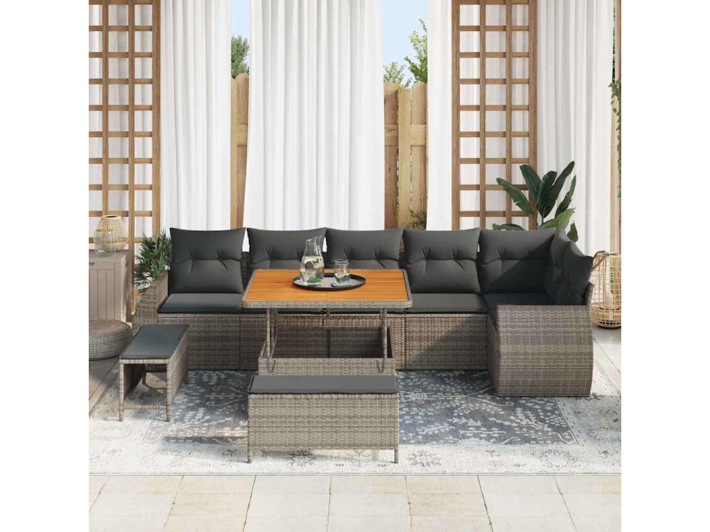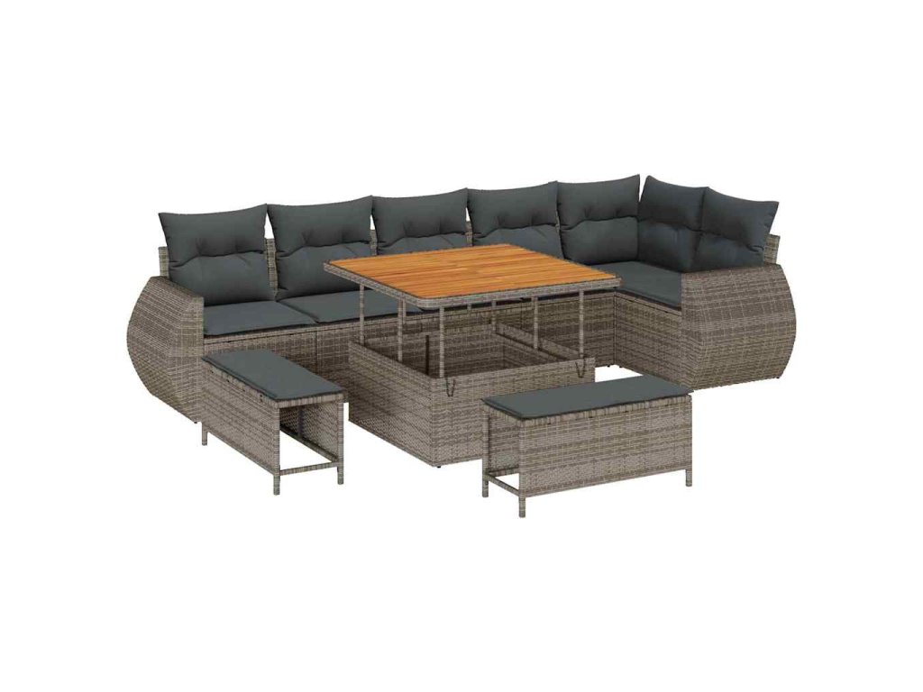 Sada zahradních pohovek 9 pcs Šedá polyratan 3361888