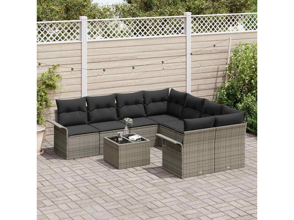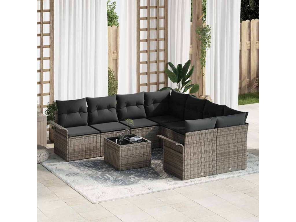 Sada zahradních pohovek 9 pcs Šedá Polyratan a ocel a sklo 3353968