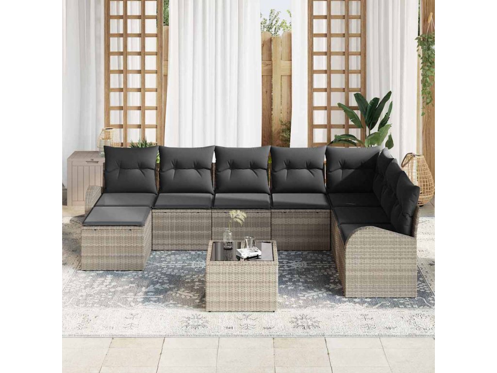 Sada zahradních pohovek 9 pcs Světle šedá Poly ratan 3346172