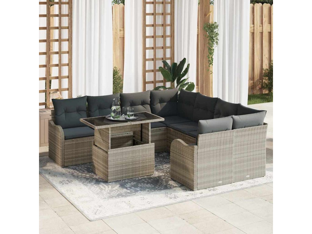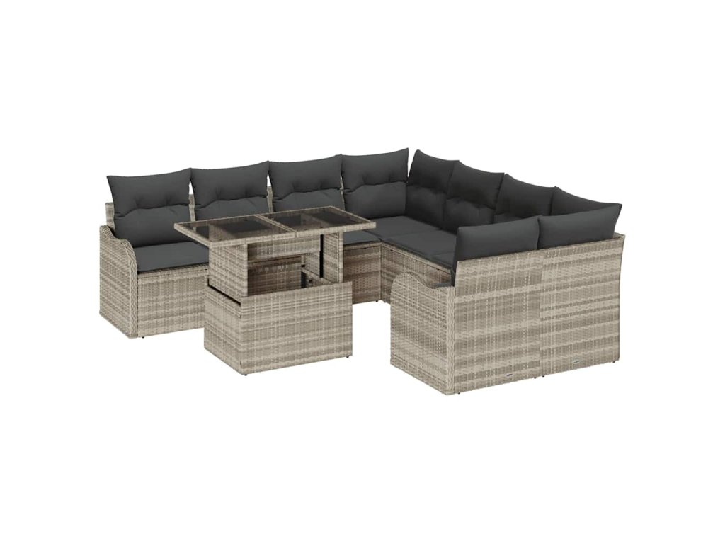 Sada zahradních pohovek 9 pcs Světle šedá Poly ratan 3348438
