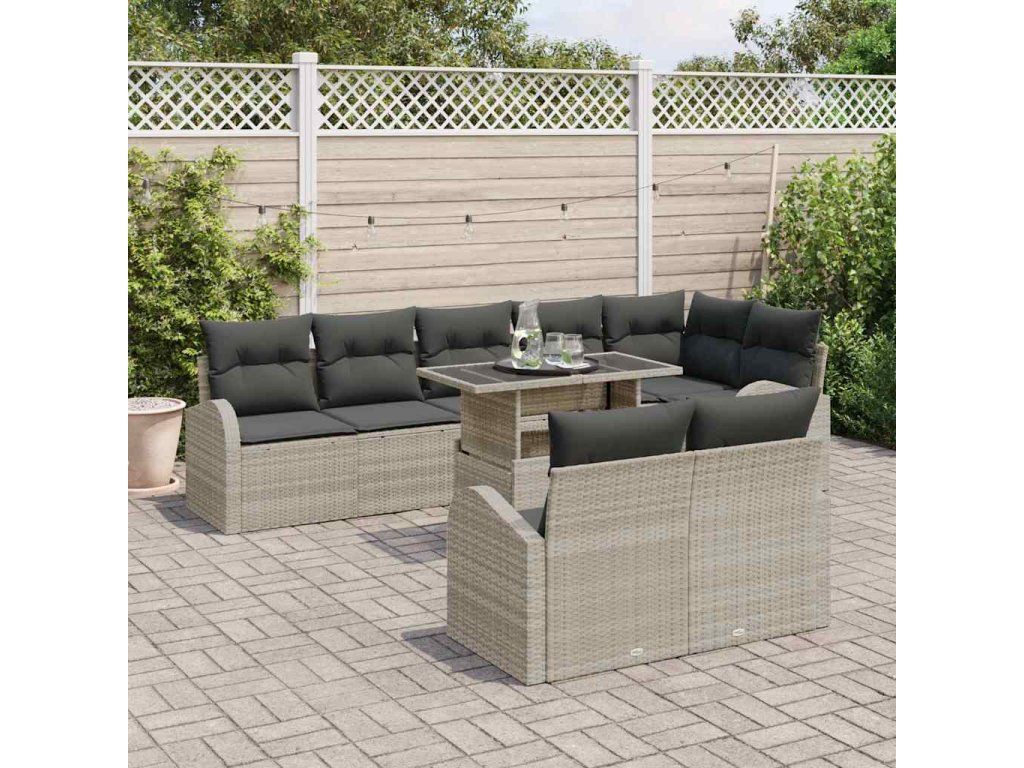 Sada zahradních pohovek 9 pcs Světle šedá Poly ratan 3357405