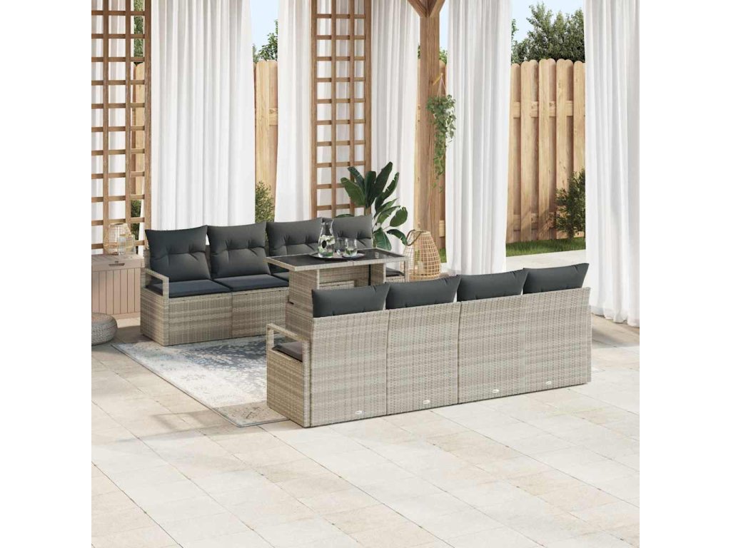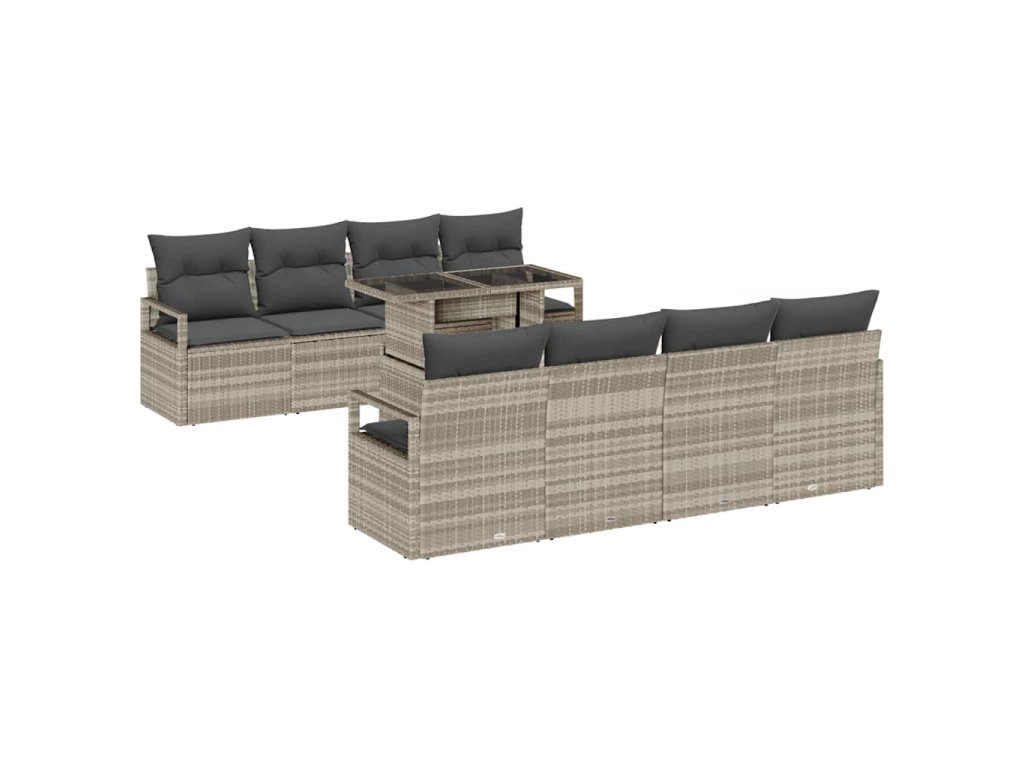 Sada zahradních pohovek 9 pcs Světle šedá Poly ratan 3357525