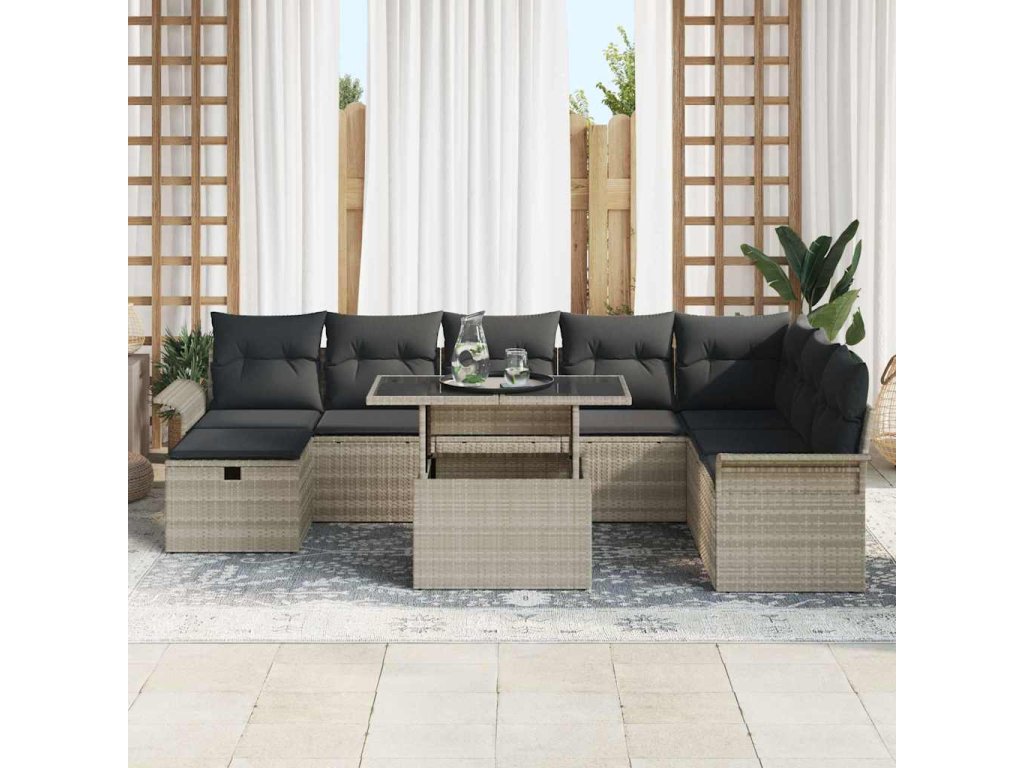 Sada zahradních pohovek 9 pcs Světle šedá Poly ratan 3359699
