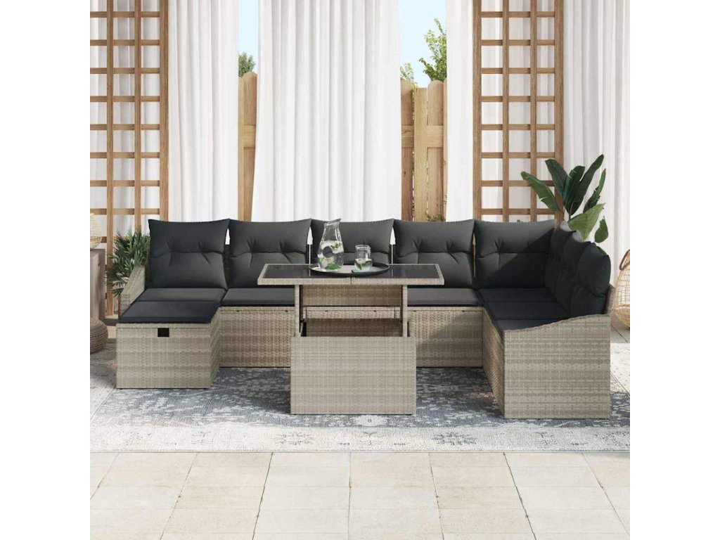Sada zahradních pohovek 9 pcs Světle šedá Poly ratan 3359859