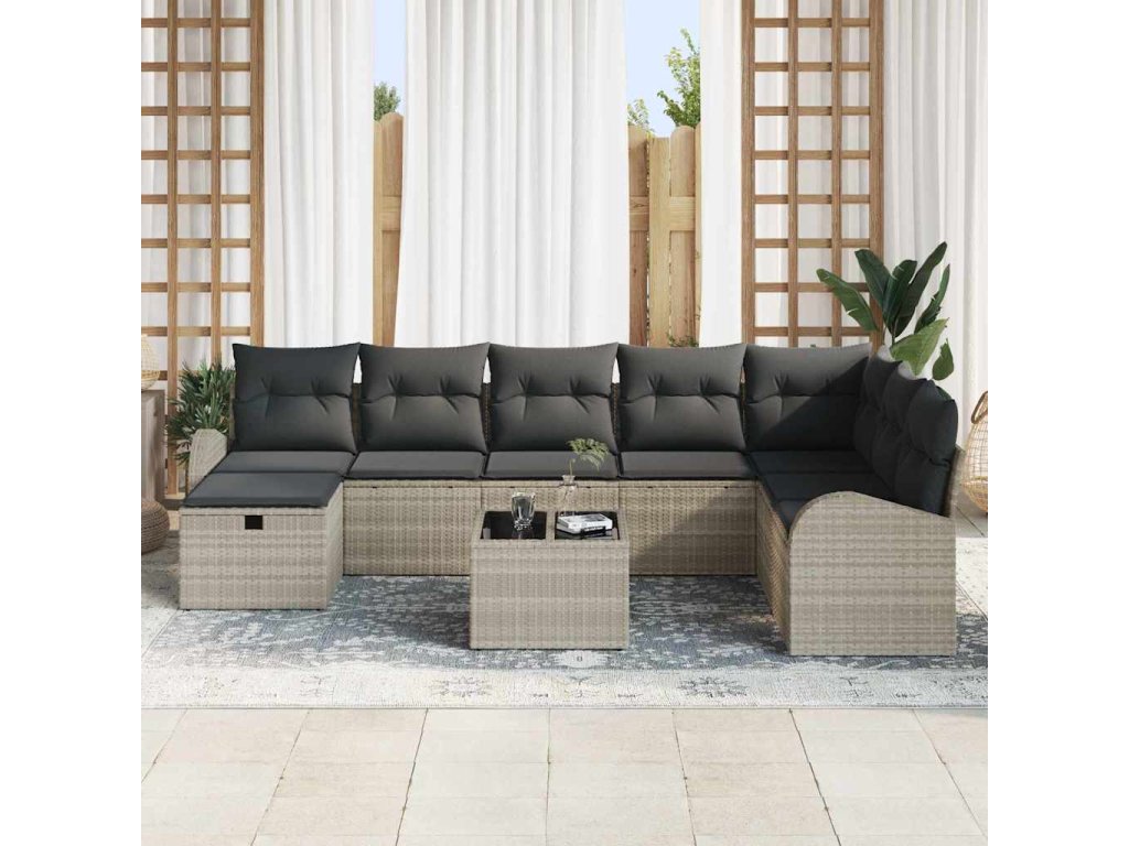 Sada zahradních pohovek 9 pcs Světle šedá Poly ratan 3360473