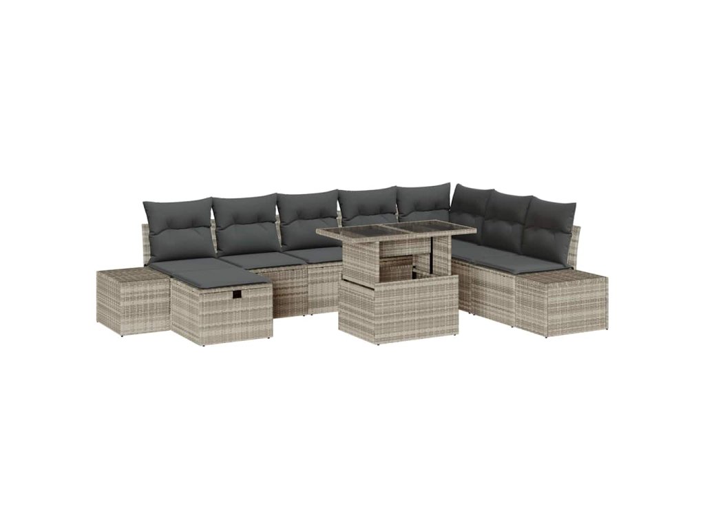 Sada zahradních pohovek 9 pcs Světle šedá polyratan 3361231