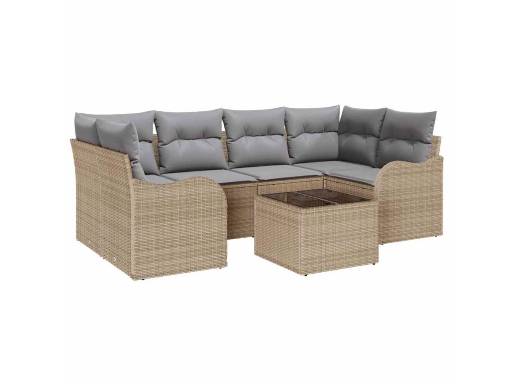 - Materiály z poly ratanu a oceli Sedací souprava se chlubí robustní konstrukcí z poly ratanu a práškované oceli, která spojila vzhled s trvanlivostí. Poly ratan dodává vizuální přitažlivost, zatímco ocelový rám zajistí stabilitu. Tato kombinace povzbuzuje luxusní dojem a zajišťuje odolnost vůči povětrnostním vlivům, takže si užijete dlouhotrvající radost.